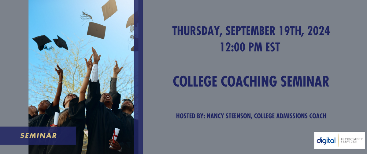 Join Digital Investment Services for a College Coaching Webinar with College Coaching Specialist, Nancy Steenson.